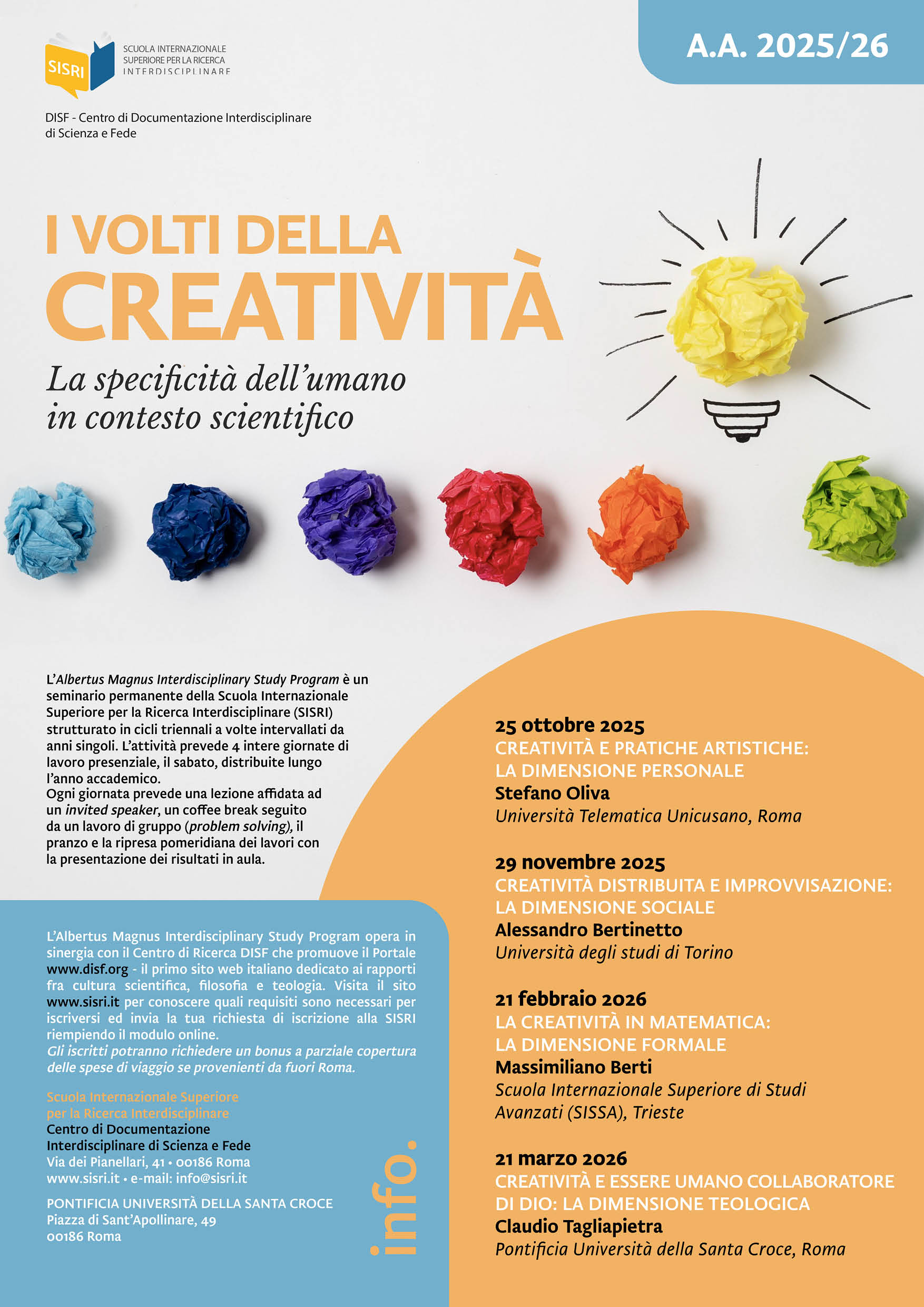 in sinergia con il progetto di ricerca "A cross-disciplinary inquiry into human creativity"
